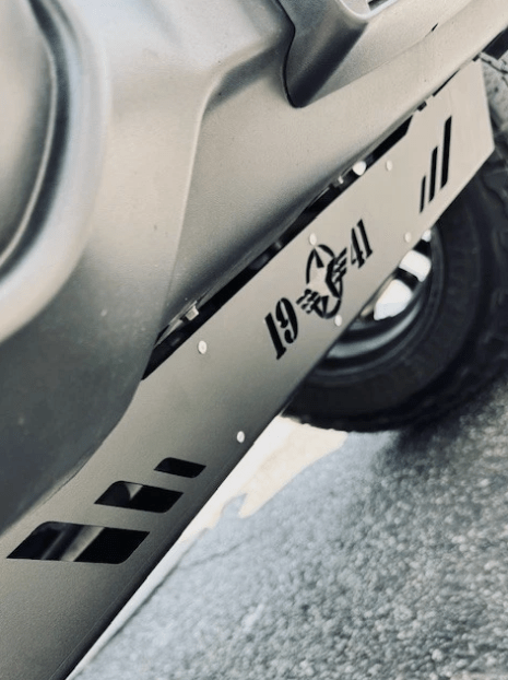 1941 Black with Black Emblem Custom Skid Plate, Compatible with Jeep Gladiator 2020-2025 & Wrangler 2018-2025. This Product Is Made In USA, Quick 30-minutes Installation, Made with Strong 11ga CRS With Texture Powder Coating for High Resistance.